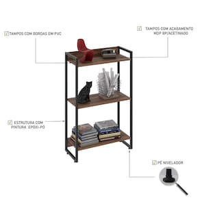 A Estante Dynamica DYES63 é um produto prático e versátil, que pode ser utilizado em diversos ambientes, como quarto e escritório, na sala, cozinha ou seu depósito. A Linha Dynamica reúne design minimalista e praticidade, traços retos e móveis versáteis são as características dessa coleção. As estruturas metálicas possuem pintura Epóxi e sapatas niveladoras e, nos tampos, MDP BP Acetinado com fitas de borda em PVC. pessoal ao alcance das mãos, além de oferecer diversas opções de cubas a sua escolha. Vidro, espelho lapidado e corrediças telescópicas são acessórios que conferem mais qualidade a todos os produtos da linha. Produto Montado: Sim Acabamento da Prateleira: BP Acetinado codigo_ean: 7908167248019 Complexidade da Montagem: Média: pode ser montado por mais de uma pessoa e/ou necessite de maior conhecimento para montagem Cor: Nogal Cor do Produto: Nogal Escala de Brilho: Fosco Escala de Brilho da Prateleira: Fosco Itens Inclusos: 1 Estante e Manual de Montagem. Linha ou Coleção: Dynamica Manual de Montagem e Instalação: https://product-hub-prd.madeiramadeira.com.br/590303/documents/f278f40a-0aa8-46fd-9edb-04f7a5f32919549073dyes63manual.pdf Material da Prateleira: MDP Material dos Pés: ABS Material Principal: Aço Necessita Montagem: Sim Origem do Produto: Nacional Peso: 8,6 kg Peso Máximo por Prateleira: 7 kg Possui Espelho: Não Possui iluminação: Não Possui Pés: 04 Possui Portas: Não Possui Prateleiras: Sim Possui Rodízio: Não Possui Vidro: Não Recomendações de Uso, Manutenção e Limpeza: Para a limpeza, utilize flanela seca ou pano macio levemente umedecido em água. Utilize um pano seco em seguida. Evite contato com produtos químicos (solventes, thinner, acetona, etc) e não utilize nenhum tipo de esponja de aço. Sapatas Niveladoras: Sim Sistema de Montagem: Parafusos e buchas Suporta Até (kg): 21 kg