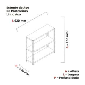 Estante de aço Pandin confeccionada em chapas 20 e 26 (0,90mm e 0,45mm) priorizando sempre a qualidade, segurança, facilidade na hora da montagem, permitindo que qualquer pessoa monte sem nenhuma dificuldade. Ideal para compor os mais variados tipos de ambientes., organizando com praticidade e beleza. Produto Montado: Sim Acabamento da Prateleira: Pintura Altura dos Pés: 3 Altura Máxima dos Pés: 3.0000 Ambiente Principal: Área de Serviço codigo_ean: 7909903450314 Complexidade da Montagem: Baixa: pode ser montado por uma pessoa sozinha Cor: Azul Delrey Cor do Produto: Azul Delrey Cor Flex: Azul Delrey Cor Interna: Azul Delrey Escala de Brilho: Semi-Fosco Escala de Brilho da Prateleira: Semi-Fosco Itens Inclusos: 1 Estante, Kit Ferragens, Manual de Montagem Linha ou Coleção: Linha Aço Multiuso Pandin Manual de Montagem e Instalação: https://product-hub-prd.madeiramadeira.com.br/873688/documents/8e12f4ed-eb8c-4323-b597-d11fc6aa8d31eleiramultiuso03prateleira.pdf Material da Prateleira: Aço Material dos Pés: Polipropileno Material Principal: Aço Montagem Flex: Não Necessita Montagem: Sim Origem do Produto: Nacional Peso: 5,98 kg Peso Máximo por Prateleira: 20 kg Possui Espelho: Não Possui iluminação: Não Possui Pés: 04 Possui Portas: Não Possui Prateleiras: Sim Possui Rodízio: Não Possui Vidro: Não Recomendações de Uso, Manutenção e Limpeza: Utilizar um pano levemente umedecido com água, para finalizar utilizar um pano seco. Não utilizar produtos abrasivos. Sapatas Niveladoras: Sim Sistema de Montagem: Parafusos com porcas sextavadas zincadas. Suporta Até (kg): 20 kg Ean: 7909903450314