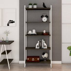 Estante Multiuso 5 Prateleiras 187x80cm Industrial Kuadra Compace Carvalho Dark / Est.Branca - Marrom