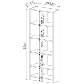 - Não nos responsabilizamos pela montagem dos produtos. Todos os produtos acompanham acessórios para que sejam montados. - Não nos responsabilizamos, no ato da , por subir escadas/elevadores ou por guincho em apartamentos. Eventuais despesas são de responsabilidade do comprador; - Confira as dimensões deste produto e certifique-se de que passará normalmente por supostos elevadores, portas, escadas e/ou corredores de sua residência; - Não aceitamos de produtos com caixas violadas ou materiais danificados, confira a quantidade de volumes e se o que está sendo entregue corresponde com a mercadoria adquirida, não aceitamos após o período de arrependimento de 7 dias corridos. Características Gerais do Produto: - Altura: 160 cm - Ideal para: Escritório - Informações Adicionais: Cada prateleira suporta até 5kg - Largura: 59,8 cm - Material: Estrutura em MDP - Profundidade: 25,5 cm - Acabamento: Acabamento em BP - Prateleiras: 5 Prateleiras - Informações Adicionais: - Não nos responsabilizamos pela montagem dos produtos. Todos os produtos acompanham acessórios para que sejam montados. - Não nos responsabilizamos, no ato da , por subir escadas/elevadores ou por guincho em apartamentos. Eventuais despesas são de responsabilidade do comprador; - Confira as dimensões deste produto e certifique-se de que passará normalmente por supostos elevadores, portas, escadas e/ou corredores de sua residência; - Não aceitamos de produtos com caixas violadas ou materiais danificados, confira a quantidade de volumes e se o que está sendo entregue corresponde com a mercadoria adquirida, não aceitamos após o período de arrependimento de 7 dias corridos.
