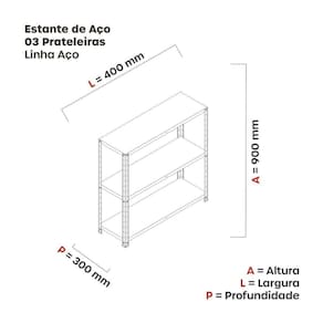Estante de aço Pandin confeccionada em chapas 20 e 26 (0,90mm e 0,45mm) priorizando sempre a qualidade, segurança, facilidade na hora da montagem, permitindo que qualquer pessoa monte sem nenhuma dificuldade. Ideal para compor os mais variados tipos de ambientes., organizando com praticidade e beleza. Produto Montado: Sim Acabamento da Prateleira: Pintura Altura dos Pés: 3 Altura Máxima dos Pés: 3.0000 Ambiente Principal: Área de Serviço codigo_ean: 7909903450277 Complexidade da Montagem: Baixa: pode ser montado por uma pessoa sozinha Cor: Cinza Cor do Produto: Cinza Cor Interna: Cinza Escala de Brilho: Semi-Fosco Escala de Brilho da Prateleira: Semi-Fosco Itens Inclusos: 1 Estante, Kit Ferragens, Manual de Montagem Linha ou Coleção: Linha Aço Multiuso Pandin Manual de Montagem e Instalação: https://product-hub-prd.madeiramadeira.com.br/873683/documents/3e66306b-749a-465c-b82e-b9047e5cc25celeiramultiuso03prateleira.pdf Material da Prateleira: Aço Material dos Pés: Polipropileno Material Principal: Aço Montagem Flex: Não Necessita Montagem: Sim Origem do Produto: Nacional Peso: 5,98 kg Peso Máximo por Prateleira: 20 kg Possui Espelho: Não Possui iluminação: Não Possui Pés: 04 Possui Portas: Não Possui Prateleiras: Sim Possui Rodízio: Não Possui Vidro: Não Recomendações de Uso, Manutenção e Limpeza: Utilizar um pano levemente umedecido com água, para finalizar utilizar um pano seco. Não utilizar produtos abrasivos. Sapatas Niveladoras: Sim Sistema de Montagem: Parafusos com porcas sextavadas zincadas. Suporta Até (kg): 20 kg Ean: 7909903450277