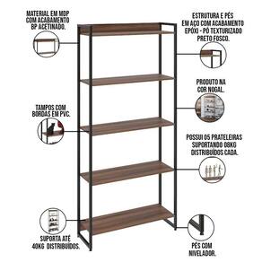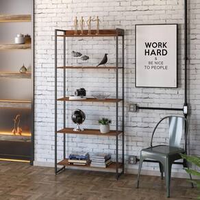 Estante Multiuso Para Escritório Industrial 05 Prateleiras Areta 186x80cm C01 Nogal - Lyam Decor