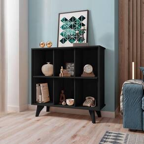 AS IMAGENS SÃO MERAMENTE ILUSTRATIVAS E PODEM SOFRER VARIAÇÕES DE COR E PEQUENOS DETALHES DE ACORDO COM O SEU MONITOR, ILUMINAÇÃO DO AMBIENTE E ATÉ MESMO A SUA PERCEPÇÃO VISUAL.Estante Organizadora de Livros com 6 Nichos Modelo Panamà Preto