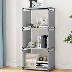 Estante Organizadora Porta Livros Com 4 Prateleiras Modular Brinquedos Quarto Banheiro Cozinha Sapateira Multiuso Cinza