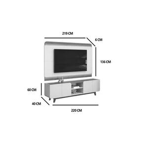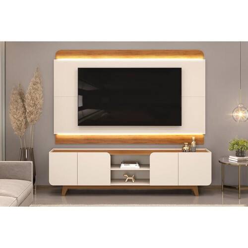 Tipo de Porta - Portas de Bater Quantidade de Portas - 4 Portas de Abrir Tipo de Iluminação - Iluminação Fita LED Quantidade de Prateleiras - 1 Prateleira Quantidade de nichos - 2 Nichos Ideal para TVs até (Polegadas) - 75 Tipo dos Pés - Pés de Madeira Quantidade de Pés - Móvel possui 4 pés