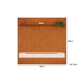 Rack Bancada c/ Painel p/ TV até 85 Pol Pratic Ripado 3 Gavetas 250x240cm Bali - DJ Móveis