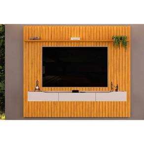 Rack Bancada c/ Painel p/ TV até 85 Pol Pratic Ripado 3 Gavetas 250x240cm Cedro/Bali - DJ Móveis