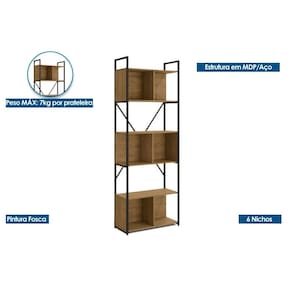 Estante p/ Sala Industrial LI014 c/ 6 Nichos 72cm Canela/Preto Kappesberg - Blush