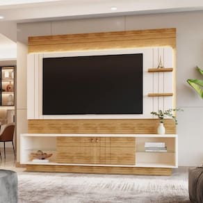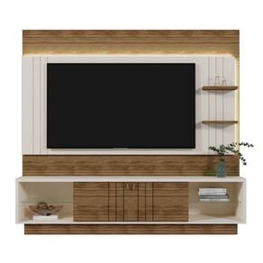 - Largura: 200 cm; - Altura: 184 cm; - Profundidade: 33 cm; - Fabricado em MDP/MDF; - Pintura UV; - Fita de LED; - Painel Frisado; - Prateleira de Vidro; - Porta em MDF Frisada de Correr; - Suporta TV de até 65; - Puxador em Poliestireno que se Assemelha à Couro Natural;