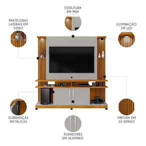Estante Painel LED Para 55 Pol 180cm York Naturalle/Off - Bechara