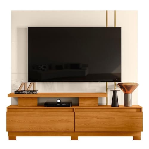 A Estante Painel Para 75 Pol 183cm Luara Z10 Off/Cinamomo, da Mpozenato, é a escolha ideal para quem busca sofisticação e praticidade na Sala de Estar.