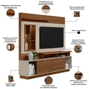 Suporta TVs de até 60 polegadas no tampo ou painel.