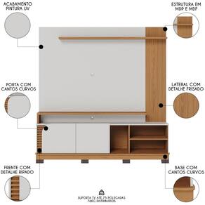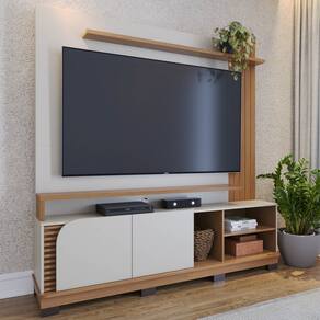 A Estante Painel para TV 75 Pol Madrid C05 Off White Matte/Freijó, da Mpozenato, combina um design retrô e contemporâneo, criando um visual único para a sua sala de estar.