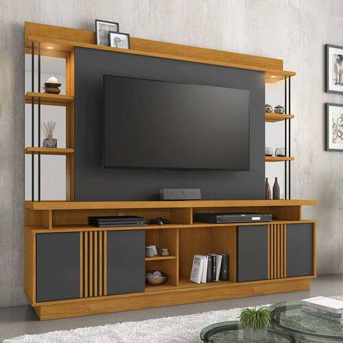 que tal a estante home esplendor? elegante e moderna, a estante esplendor vai deixar seu centro de entretenimento completo e levar mais estilo ao seu lar-style. como tem estrutura para receber a tv e outros aparelhos eletrônicos, ela te ajuda a organizar tudo numa parede só e manter sempre arrumado, pronto para aquela maratona de séries e filmes. já o visual sofisticado destaca o acabamento amadeirado e a cor atemporal, assim fica simples combiná-la com o restante dos móveis no seu cantinho, desde as mesas de centro e lateral até um sofá aconchegante. perfeita, né? Marca: Modern