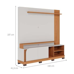 que tal a estante home jurerê? uma ótima opção para quem busca por um móvel espaçoso e cheio de personalidade, a estante home jurerê tem design clean e moderno. além do painel para tv de até 75 polegadas, ela também tem prateleiras e nichos, que ajudam na decoração e organização, já que expõem pequenos itens. o destaque do design fica por conta da junção entre cor neutra e acabamento amadeirado, que dá um toque especial do estilo contemporâneo ao móvel. Marca: Modern