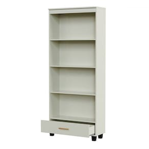 O(a) Estante para Livros 1 Gaveta 3 Prateleiras 100% Mdf Off White/Gold C57 - Pradel é produzido em 100% MDF na escala de brilho Fosco, e possui um grau de dificuldade de montagem: Médio.