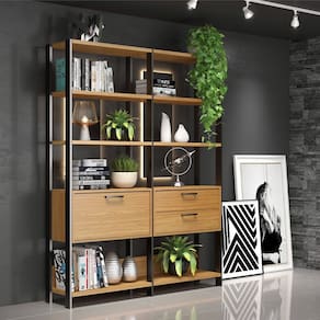 Estante para Livros 2 Gavetas 1 Porta Estilo Industrial E92 Freijó Preto Fosco Dalla Costa