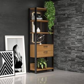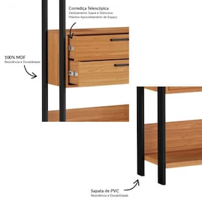 Características: Estrutura 100% MDF Acabamento em Pintura UV Prateleiras Leves e Resistentes 02 Gavetas com Corrediças Metálicas Puxadores Plásticos Estilo Industrial Sapatas PVC