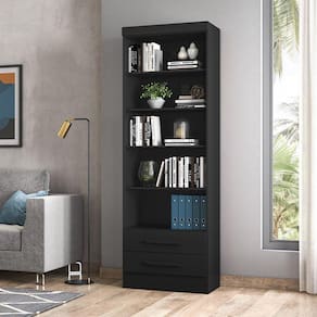 Com um design contemporâneo, o Livreiro com 2 Gavetas é ideal para compor a decoração de diversos ambientes. Suas prateleiras móveis, permitem regular o espaço e acomodar objetos maiores. O produto ainda inclui gavetas com excelente profundidade, levando funcionalidade e praticidade para organização do espaço. Seu sistema anti-tombamento, garante segurança para evitar riscos de acidentes. Acabamento da Gaveta: Pintura UV Acabamento da Porta: Acabamento da Prateleira: Pintura UV Acabamento dos Pés: Altura do Espelho: Altura do Espelho 01: Altura do Espelho 02: Altura do Espelho 03: Altura do Espelho 04: Altura do Espelho 05: Altura do Espelho 06: Altura dos Pés: Ambiente Principal: Escritório Complexidade da Montagem: Média: pode ser montado por mais de uma pessoa e/ou necessite de maior conhecimento para montagem Cor: Preto Cor do Produto: Preto Cor Flex: Não Cor Interna: Preto Escala de Brilho: Fosco Escala de Brilho da Gaveta: Fosco Escala de Brilho da Porta: Escala de Brilho da Prateleira: Brilhante Espessura do Espelho: Fita Integrada: Formato do Espelho: Gaveta com Chave: Não Informações Complementares: Itens Inclusos: 1 Estante, Kit Ferragens e Manual de Montagem Largura do Espelho: Largura do Espelho 01: Largura do Espelho 02: Largura do Espelho 03: Largura do Espelho 04: Largura do Espelho 05: Largura do Espelho 06: Linha ou Coleção: Módulos e Complemento Manual de Especificação Técnica: Manual de Montagem e Instalação: https://cdn2.madeiramadeira.com.br/atributo/qmovi/1203425-3420-livreiro-2-gavetas-instruCoes-de-montagem.pdf Material da Gaveta: MDP Material da Porta: Material da Prateleira: MDP Material do Puxador da Gaveta: MDF Material do Puxador da Porta: Material dos Pés: Material Principal: MDP Montagem Flex: Não Necessita Montagem: Sim Número de Prateleiras: Origem do Produto: Nacional Pés Reguláveis: Peso: 27.8 Peso Máximo por Gaveta: 5 Peso Máximo por Prateleira: 7 Possui Espelho: Não Possui Possui iluminação: Não Possui Nicho: Não Possui Nichos: Possui Pés: Não Possui Portas: Não Possui Prateleiras: 05 Possui Rodízio: Prateleiras Reguláveis: Recomendações de Uso, Manutenção e Limpeza: Não utilize produtos químicos ou abrasivos para limpar seus móveis. A manutenção em geral, exige apenas a retirada do pó com um pano seco. Mas, a limpeza também pode ser feita utilizando um pano levemente umedecido com água e/ou álcool. Em seguida, a superfície deve ser seca com a ajuda de um pano limpo e macio. Não expor o produto diretamente à luz solar. Rodízio com Trava: Sapatas Niveladoras: Não Sistema de Montagem: Parafusos e cavilhas Suporta Até (kg): 45 Tipo de Corrediça da Gaveta: Metálica Simples Tipo de Dobradiça/Corrediça da Porta: Tipo de Fixação do Espelho: Tipo de Madeira Maciça: Tipo de Madeira Maciça da Gaveta: Tipo de Madeira Maciça da Porta: Tipo de Madeira Maciça da Prateleira: Tipo de Madeira Maciça do Puxador da Gaveta: Tipo de Madeira Maciça do Puxador da Porta: Tipo de Madeira Maciça dos Pés: Tipo de Porta: Tipo de Puxador da Gaveta: Externo Tipo de Puxador da Porta: