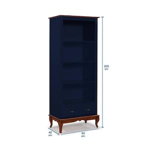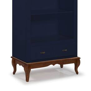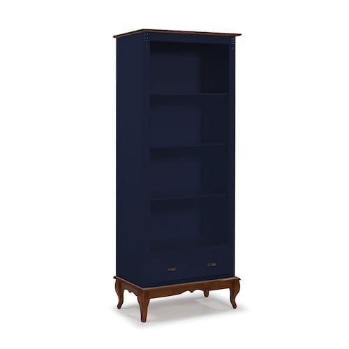 Estante para Livros 3 Prateleiras 1 Gaveta Pés Luis XV 60201 Linz Móveis - Azul Petróleo/Imbuia
