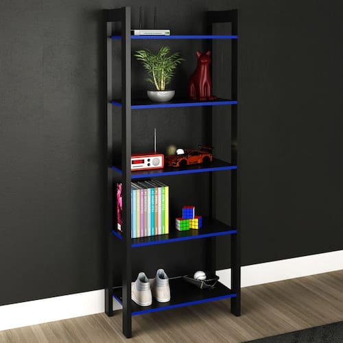 O(a) Estante para Livros 5 Prateleiras Preto/Azul Me4166 - Tecno Mobili é produzido em MDP na escala de brilho Fosco, e possui um grau de dificuldade de montagem: Médio.