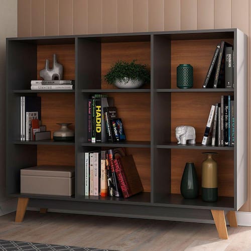 O(a) Estante para Livros 9 Nichos Grafite/Nogal - Hecol Móveis é produzido em MDP na escala de brilho Fosco, e possui um grau de dificuldade de montagem: Médio.