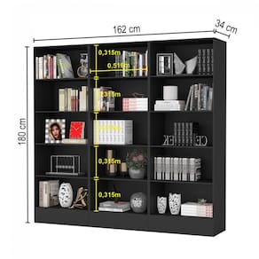 O(a) Estante para Livros Duda 12 Prateleiras Preto - Carioca Móvies é produzido em MDP na escala de brilho Fosco e Semi-Brilho, e possui um grau de dificuldade de montagem: Médio.