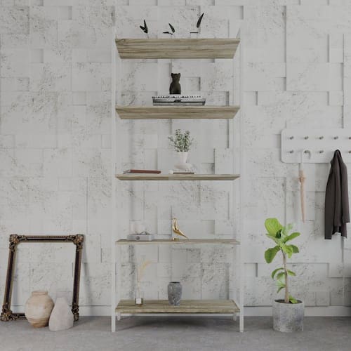 Estante para Livros Industrial Aço Multiuso 5 Prateleiras 187x80cm Active Yescasa Carvalho / Est.Branca - Marrom