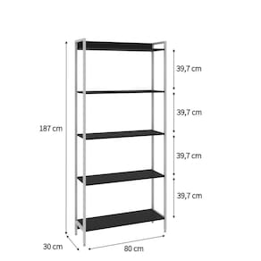 Estante para Livros Industrial Aço Multiuso 5 Prateleiras 187x80cm Active Yescasa Preto Ônix / Est.Branca