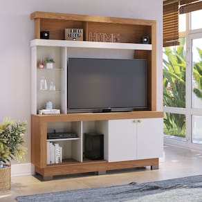 Com um design tradicional, a Estante Valença é perfeita para acomodar TVs de até 50 polegadas. Ela oferece três nichos inferiores e duas portas para organizar seus objetos, aparelhos eletrônicos e até caixas de som. Na parte superior, possui nichos adicionais e uma torre lateral com duas prateleiras em vidro, que não só embelezam o produto, mas também são ideais para expor itens de decoração. Além disso, a montagem dos pés é opcional, permitindo personalizar conforme suas necessidades. CARACTERÍSTICAS TÉCNICAS: - Produzido em MDP 12 e 15 mm e HDF de 3 mm - Acabamento Fosco com Pintura UV - Porta com Dobradiça Metálica - Puxadores tipo Ponto em plastico na cor Dourado - Prateleiras em Vidro - Pés Plástico com 5 cm de Altura (montagem opcional) - Peso Suportado no Tampo de 50 kg - Ideal para TV até 50 Polegadas - Possui 2 Portas, 3 Prateleiras e 8 Nichos INFORMAÇÕES TÉCNICAS: Altura: 188 cm Largura: 160,3 cm Profundidade: 37,8 cm Peso: 48,4 kg ITENS INCLUSO: - Estante Valença - Manual de Montagem - Kit de Ferragens INFORMAÇÕES ADICIONAIS: - Não realizamos a montagem do móvel e não nos responsabilizamos por ela. Verifique o produto antes de montá-lo. Produtos danificados na montagem não serão trocados. Montagem e instalação são por conta do comprador. - As imagens decorativas são ilustrativas e podem conter itens não inclusos. As cores do produto podem variar conforme o monitor, iluminação ou percepção visual. - Limpeza: Use um pano macio e seco ou levemente umedecido com água. Não utilize materiais abrasivos como palha de aço ou objetos cortantes. Garantia de 3 meses contra defeitos de fabricação conforme o Código de Defesa do Consumidor.