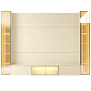As torres, com espelhos no fundo, criam um encantador efeito de profundidade infinita, e a iluminação em LED com 120 pontos em tom quente adiciona sofisticação e aconchego ao ambiente. Disponível em versões com duas torres, uma torre, sem torres ou apenas o painel, é a escolha ideal para renovar sua sala! Medidas rack: 41,5cm de altura, 215cm de largura e 31,8cm de profundidade.