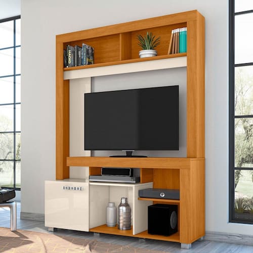 O(a) Estante para TV Até 50 Polegadas Flavia 1 Porta Cinamomo/Off White - Madetec é produzido em MDP na escala de brilho Semi-Brilho, e possui um grau de dificuldade de montagem: Médio.