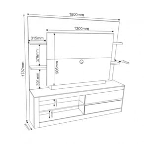 - Possui Furação para Passagem de Cabos: Sim - Possui Vidro?: Não - Pode Ser Montado Invertido?: Não - Necessita de Montagem: Sim - Possui Borda de PVC nas Bordas?: Não - Possui Pés?: Não - Possui Sapatas?: Sim - Possui Rodízios?: Não - Possui Tampo?: Sim - Possui Puxadores?: Não - Possui Prateleiras?: Sim - Possui Espelho?: Não - Acompanha Suporte para TV?: Não - Categoria: Estante para TV - Material da Estrutura: Mdp e Mdf - Espessura da Estrutura: 15 mm e 25 mm - Quantidade de Gavetas: 2 - Peso Suportado nas Gavetas (Kg): 10 - Material das Corrediças: Metálica - Tipo da Corrediça: Convencional - Tipo de Rack?: Com Painel - Tamanho: Médio - Ideal para TVs até: 55 Polegadas - Quantidade de Prateleiras: 5 - Peso Suportado nas Prateleiras: 10 - Escala de Brilho: Semi-Brilho - Material do Tampo: MDP - Espessura do Tampo (mm): 15 mm - Como os Móveis Chegarão em Minha Casa?: Desmontado em caixas, acompanhado de todas as peças, ferragens e manuais para montagem. - Grau de Dificuldade de Montagem: Médio - Sistema de Montagem: Parafusos, cavilhas, cola e minifix. - Indicação de Uso: Sala de Estar - Observação: Objetos decorativos que aparecem nas imagens, não acompanham o produto. A capacidade de carga considera que o peso está distribuído igualmente pela peça. As cores das imagens podem variar de acordo com as configurações do seu monitor e/ou da iluminação do ambiente onde o produto está inserido. As imagens indicam uma sugestão - Recomendação de Manutenção: Utilizar pano levemente umedecido, seguido de pano seco. Não utilizar quaisquer produtos abrasivos. - Garantia (dias): 90 Dias - Revestimento/Acabamento: Pintura UV - Possui Gavetas?: Sim - Possui Portas?: Não - Medidas do Painel (A x L x P): 178,2 X180 X40CM - Quantidade de Sapatas: 6 - Necessita de Fixação na Parede?: Não - Acompanha LED: Não