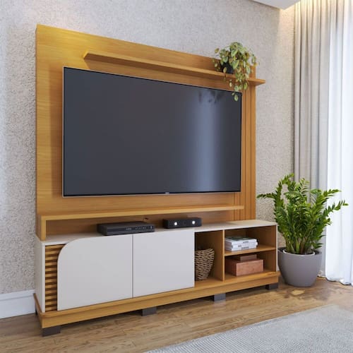 O(a) Estante para TV Até 75 Polegadas Jurerê 2 Portas Ripado Naturalle/Off White Matte - Colibri é produzido em MDF, MDP e HDF na escala de brilho Fosco, e possui um grau de dificuldade de montagem: Médio.