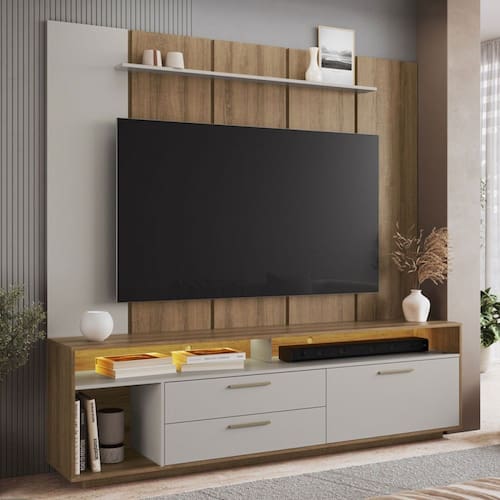 O(a) Estante para TV Até 75 Polegadas Reims 1 Porta 2 Gavetas com Led Arenas - Art In Móveis é produzido em MDP na escala de brilho Fosco, e possui um grau de dificuldade de montagem: Médio.