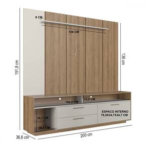 - Medidas do Rack (A x L x P): 58,4x200x36,6 cm