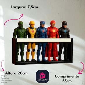 Estante porta bonecas nicho parede organizador coleção brinquedos prateleira quarto infantil mdf 55cm Ripa: branca Deixe uma criança, ou um colecionador feliz ao adquirir uma prateleira feita pensada nas medidas de bonecos estilo super herói e barbie preciso montar É complicado de instalar Não se preocupe as prateleiras já vão montadas e prontas para instalar. Enviamos com buchas e parafusos, então é só fixar na parede. Simples, rápido e sem dor de cabeça. será que é resistente mesmo Sim fabricadas em mdf 15mm com acabamento melamínico, nossas prateleiras suportam até 8 kg cada com tranquilidade. É qualidade testada e aprovada por centenas de clientes. e se não combinar com meu ambiente A cor amadeirada e o design minimalista combinam com qualquer estilo de decoração - do clássico ao moderno. Ideal para quarto, brinquedoteca , sala, creche, escola... E até quarto de bebê. vai valer a pena mesmo Você recebe 1 prateleira pronta para uso, com design artesanal, duráveis e versátil. Use para organizar e decorar com estilo, sem gastar muito e sem depender de móveis planejados. é confiável comprar da arte cedro Sim produzimos de forma artesanal e com atenção aos detalhes. Nosso compromisso é com a sua satisfação e com o charme da sua casa. A prova disso A fidelidade dos nossos clientes e os elogios que recebemos todos os dias. Detalhe: não é pintada mdf . Medidas: 55 cm de comprimento 7,5 cm de profundidade 20 cm de altura O que vem: 1 prateleira de 55cm. Faça seu pedido agora e transforme seu espaço com praticidade e estilo Arte cedro: o detalhe na sua decoração. Marca: Não Informado
