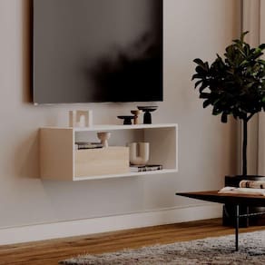Com design compacto e sofisticado, ele ocupa pouco espaço, deixando sua sala ou quarto mais harmônicos. Possui compartimentos abertos para objetos decorativos e um compartimento fechado com porta, garantindo praticidade e discrição no armazenamento do dia a dia.