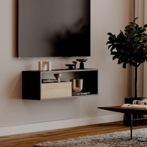 Ficha Técnica: Estrutura em madeira MDP 15mm Cor: Preto com Carvalho Medidas Totais: 30cm de altura x 100cm de largura x 27cm de profundidade Medida interna dos nichos: 48,5cm de largura x 14cm de altura x 24cm de profundidade Montagem e Instalação: Produto enviado desmontado, com manual de instruções e acessórios inclusos. A montagem é simples e pode ser feita com uma chave de fenda. A instalação na parede é de responsabilidade do cliente.