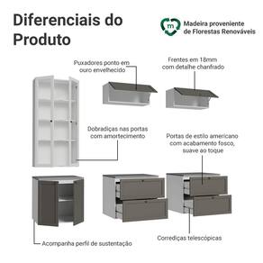 A Linha Vik se destaca pelos detalhes: portas com molduras inspiradas no estilo americano, puxadores ponto em ouro envelhecido, dobradiças com amortecimento e gavetas com corrediças que permitem abertura total. Além disso, as portas basculantes possuem um sistema de pistão a gás, permanecem suspensas quando abertas, proporcionando mais segurança. Um móvel completo, que combina elegância e funcionalidade para valorizar cada detalhe da sua casa.