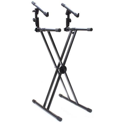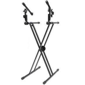 Suporte com duas prateiras para teclado-5 posições de altura reguladas por gatilho de pressão,garantem facilidade e rapidez ao operador no ajuste do produto,sem que esse precise agachar ou retirar todos os equipamentos da estante.-as engrenagens metálicas diferencial ,conferem grande estabilidade,durabilidade e alta capacidade de carga ao produto,mesmo para equipamentos pesados.-pode ser dobrado,facilitando o transporte e a armazenagem. -alta qualidade-TOP-dimensões: Altura:470-1310 mm Largura do braço:35 cm-posições de altura e abertura da base Posição 1: altura:48 cm - base:90 cm Posição 2: altura:63 cm - base:80 cm Posição 3: altura:75 cm - base:70 cm Posição 4: altura:86 cm - base:56 cm Posição 5: altura:94 cm - base:42 cm-capacidade de carga Base:35 kg Extensão:15 kg-material:aço-peso:8,8 kg-cor:preto-origem:importado-ideal para piano,teclado de 61 teclas/76 teclas/88 teclas,notebook,controladoras,case de CDJ,entre outros. Marca: Aj Som Acessórios Musicais