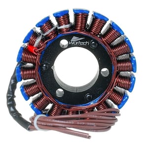 Marca : Wortech (Indústria Brasileira) Fabricação Exclusiva Instalação: Produto somente com os cabos, será necessário utilizar borracha, conectores e pulsador da peça do cliente. Código: W-ES/447 -Aplicação: BMW G 310 R (16-20)BMW G 310 GS (16-20) Características do produto: -Fio de cobre esmaltado de 200° -Resina : isolamento a base de cerâmica resistente a 1000° -Chicote : Cabos de silicone resistente a 200°-Rebobinamento dentro dos padrões do fabricante originalDimensões da carcaça: -Diâmetro Externo: 93 mm-Diâmetro Interno: 35 mm-Espessura da parte de fixação: 24 mmItens Inclusos: -01 > Estator-01 > Certificado de garantiaGarantia total de 12 meses