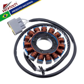 Características do produto: -Fio de cobre esmaltado de 200° -Resina : isolamento a base de cerâmica resistente a 1000° -Chicote : Cabos de silicone resistente a 200°-Conector: Em Nylon de alta qualidade -Rebobinamento dentro dos padrões do fabricante originalDimensões da carcaça:-Diâmetro Externo: 104,5mm-Diâmetro Interno: 38mm-Espessura da parte de fixação: 12mmItens Inclusos:-01 > Estator-01 > Certificado de garantia- Garantia total de 12 meses
