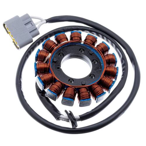 Características do produto: -Fio de cobre esmaltado de 200° -Resina : isolamento a base de cerâmica resistente a 1000° -Chicote : Cabos de silicone resistente a 200°-Conector: Em Nylon de alta qualidade -Rebobinamento dentro dos padrões do fabricante originalDimensões da carcaça:-Diâmetro Externo: 104,5mm-Diâmetro Interno: 38mm-Espessura da parte de fixação: 12mmItens Inclusos:-01 > Estator-01 > Certificado de garantia- Garantia total de 12 meses