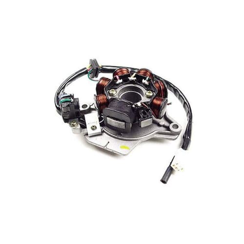 Código: 90271590 CARACTERÍSTICAS: O estator tem a função de gerar energia para o sistema de carga de bateria e iluminação (painel, farol, lanterna traseira, piscas dianteiros e traseiros). BENEFÍCIOS: Núcleo laminado e isolado (Reduz o aquecimento e aumenta a eficiência da peça) Acabamento compatível com o padrão original (Facilita a instalação da peça) Verniz resistente às altas temperaturas (Aumenta a durabilidade da peça) Cobre de alta condutibilidade elétrica (Aumenta a eficiência da peça) COMPATÍVEL COM: HONDA CG CARGO 125 1995 - 1999 / HONDA CG TITAN 125 1992 - 1999 Recomendamos que a instalação seja realizada por um profissional qualificado. Garantia: 3 meses.