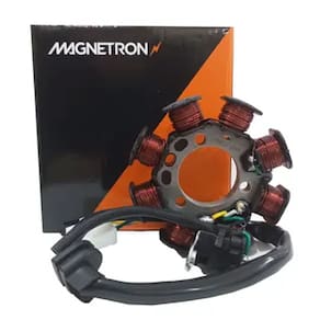 Loja Oficial Giro Moto PartsO estator da Magnetron tem uma excelente qualidade devido a sua fabricação com materiais reforçados, garantindo durabilidade, resistência e um bom custo beneficio. O estator tem a função de gerar energia para o sistema de carga de bateria e iluminação (painel, farol, lanterna traseira, piscas dianteiros e traseiros).Especificações:• Marca: Magnetron• Modelos Compativeis: Honda Nxr Bros 160 EDD/ESD Flex (2015 à 2023)• Ref: 90279040Conteúdo da Embalagem:01- Estator com Bobina pulso para Bros 160 2015 2016 2017 2018 2019 2020 2021 2022 2023 (Magnetron)