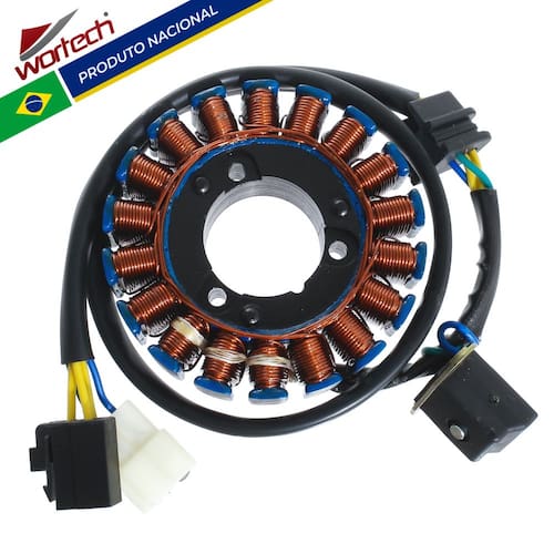 Comet GT R 250 EFI (2010-2013)Mirage 250 Efi (2010-2013)Características do produto: -Fio de cobre esmaltado de 200° -Resina : isolamento a base de cerâmica resistente a 1000° -Chicote : Cabos de silicone resistente a 200°-Conector: Em Nylon de alta qualidade -Rebobinamento dentro dos padrões do fabricante originalDimensões da carcaça:-Diâmetro Externo: 95 mm-Diâmetro Interno: 35 mm-Espessura da parte de fixação: 18 mmConexões: -01 > Conector 3 vias com 3 cabos marrons-01 > Conector 2 vias com 1 cabo azul e 1 cabo verde Itens Inclusos:-01 > Estator-01 > Certificado de garantia- Garantia total de 12 meses