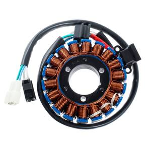 Mirage 650 (2010-2012)Comet GT R 650 (2010-2013)Características do produto: -Fio de cobre esmaltado de 200° -Resina : isolamento a base de cerâmica resistente a 1000° -Chicote : Cabos de silicone resistente a 200°-Conector: Em Nylon de alta qualidade -Rebobinamento dentro dos padrões do fabricante originalDimensões da carcaça:-Diâmetro Externo: 104 mm-Diâmetro Interno: 38 mm-Espessura da parte de fixação: 20 mmConexões: -01 > Conector 3 vias com 3 cabos marrons-01 > Conector 2 vias com 1 cabo verde e 1 cabo azul Itens Inclusos:-01 > Estator-01 > Certificado de garantia- Garantia total de 12 meses