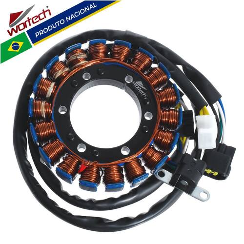 Marca : Wortech (Indústria Brasileira) Fabricação ExclusivaCódigo: W-ES/407 Instalação: Não é necessário adaptações -Aplicação:DR 650 SE (1996-2011)Freewind XF 650 (1997-2002)Características do produto: -Fio de cobre esmaltado de 200° -Resina : isolamento a base de cerâmica resistente a 1000° -Chicote : Cabos de silicone resistente a 200°-Conector: Em Nylon de alta qualidade -Rebobinamento dentro dos padrões do fabricante originalDimensões da carcaça:-Diâmetro Externo: 115 mm-Diâmetro Interno: 54 mm-Espessura da parte de fixação: 18 mmConexões: -01 > Conector 3 vias com 3 cabos amarelos-01 > Conector 4 vias com 1 cabo verde, 1 cabo azul, 1 cabo branco e 1 cabo pretoItens Inclusos:-01 > Estator-01 > Certificado de garantia-Garantia total de 12 meses