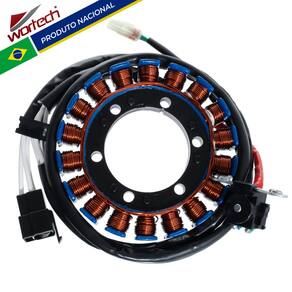 Marca : Wortech (Indústria Brasileira) Fabricação Exclusiva Instalação: Não é necessário adaptações -Aplicação: NX 400 Falcon ( 1999-2008 ) Características do produto: -Fio de cobre esmaltado de 200° -Resina : isolamento a base de cerâmica resistente a 1000° -Chicote : Cabos de silicone resistente a 200°-Conector: Em Nylon de alta qualidade -Rebobinamento dentro dos padrões do fabricante Dimensões da carcaça: -Diâmetro Externo: 114 mm-Diâmetro Interno: 54 mm-Espessura da parte de fixação: 12 mm Conexões: -01 > Conector 3 vias com 3 cabos amarelos -01 > Conector 2 vias Pulsador Itens Inclusos: -01 > Estator-01 > Certificado de garantia -Garantia total de 12 meses